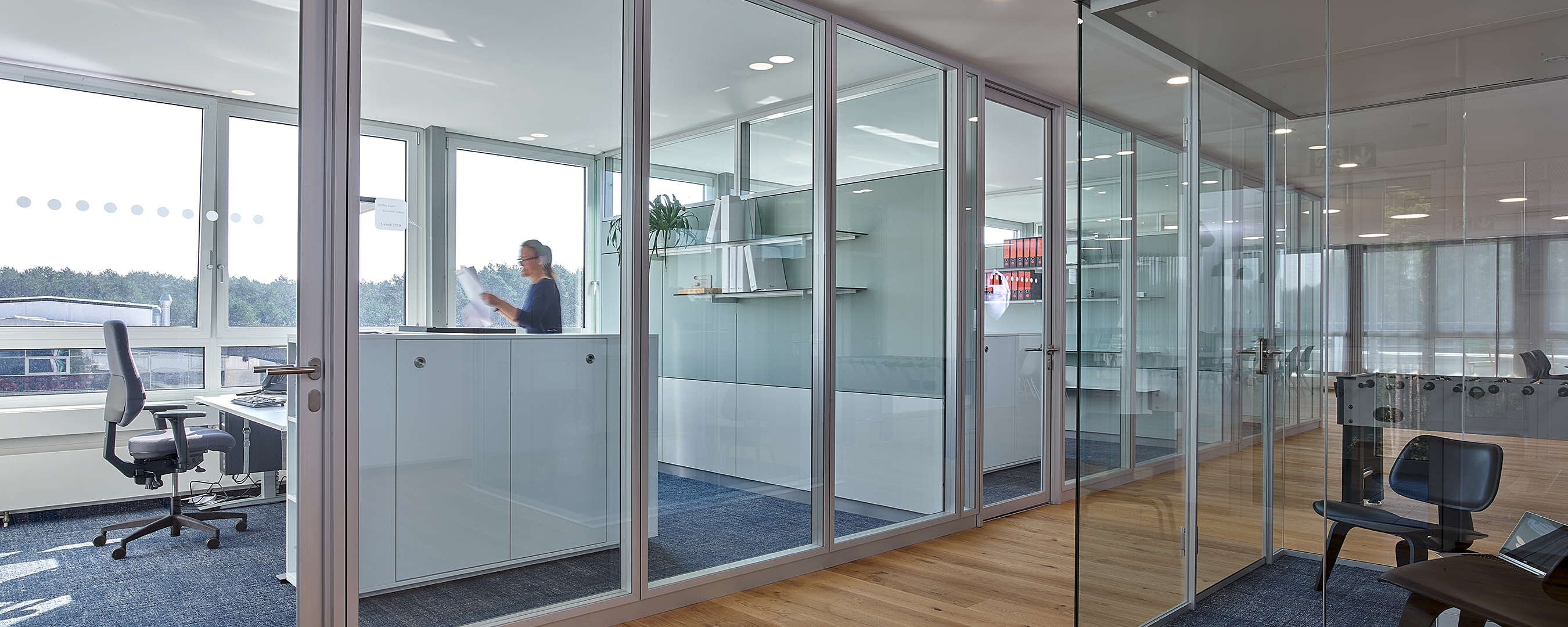 Materialien mit hoher Absorption werden eingesetzt um die Konzentration mehrerer Personen zu unterstützen, hohe Sprachverständlichkeit für Telefonate und Teamgespräche zu gewährleisten. Wir realisieren für jede Raumsituation die optimale Akustik. Trennwandabsorber in Verbindung mit Deckenabsorbern bieten den Mitarbeitern ein entspanntes Arbeiten ohne Störgeräusche.